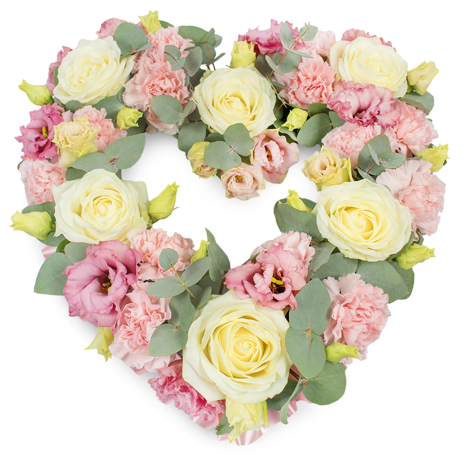 Express heartfelt sympathy with our Truly Loved Tribute open heart wreath from Flowers Isle of Dogs. Thoughtfully arranged with elegant white roses, soft pink carnations, delicate pink lisianthus and fresh eucalyptus, this premium funeral tribute is a beautiful way to say goodbye and show how much your loved one meant to you. The gentle pink and white tones create a serene, comforting display, perfect for funerals, memorials and celebrations of life. Expertly handcrafted by our Isle of Dogs florists, each tribute is made to order using fresh, high-quality blooms for lasting beauty. Approximate dimensions: 43cm (17") high x 42cm (16.5") wide, ideal for placing by the coffin or remembrance area. We carefully select seasonal flowers and may substitute blooms of similar colour, style and value to ensure your tribute looks its very best. Same-day or next-day delivery is available across Isle of Dogs and nearby areas, with reliable, sensitive service you can trust during difficult times. Order online at flowersisleofdogs.co.uk for a truly personal and meaningful floral farewell.